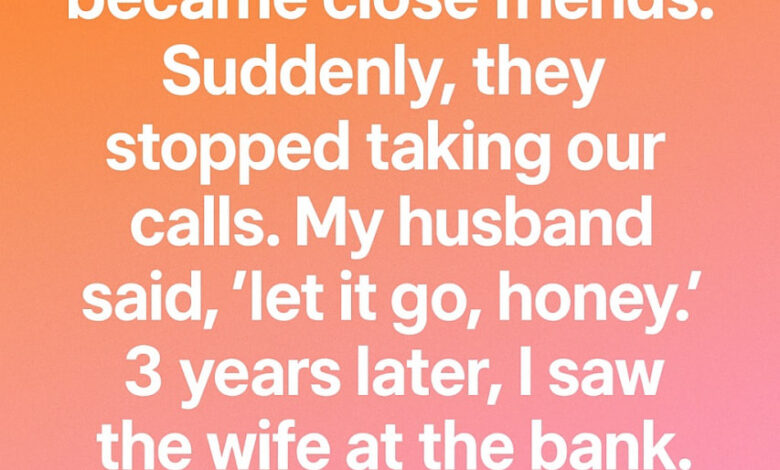Three years passed, and although life went on, the mystery of their disappearance lingered in my mind. One morning at the bank, I unexpectedly saw the wife from that couple. She recognized me instantly, and her smile faded as if she didn’t know what to say. I walked over, hoping for a simple explanation. Instead, she looked nervous and almost apologetic.