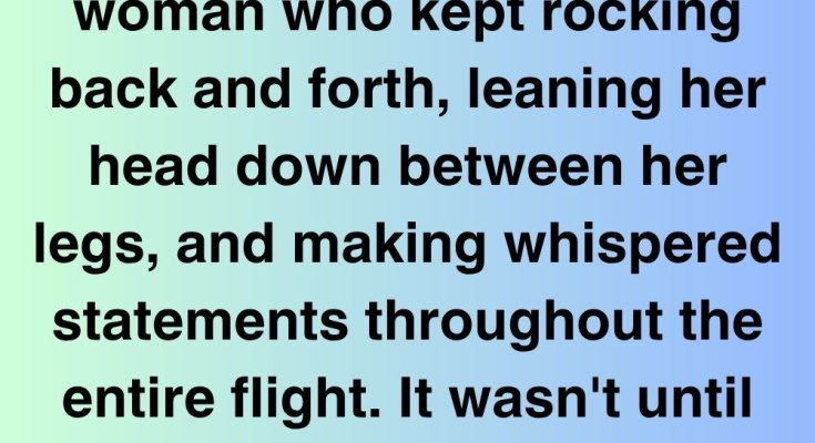 I was seated next to a woman who kept rocking back and forth, leaning her head down between her legs, and making whispered statements throughout the entire flight. It wasn’t until the end that I heard what she was saying — and it completely changed how I saw her. At first, I was uneasy. She seemed nervous, her hands clenched tightly together. I assumed she had a fear of flying, something many people struggle with. I tried to offer her a reassuring smile, but she didn’t seem to notice.