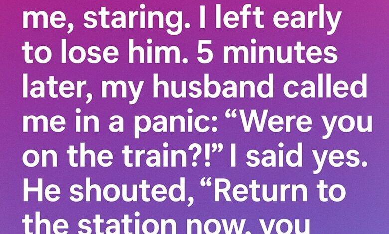 I was on the train when a man sat across from me, staring. I left early to lose him. Five minutes later, my husband called me in a panic: “Were you on the train?!” I said yes. He shouted, “Return to the station now, you have to—”
