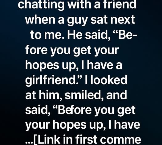 At a restaurant, a man sat down and said, “Before you get your hopes up, I have a girlfriend.”