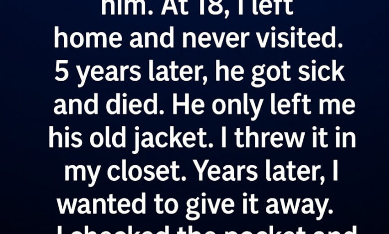 At the funeral, my mom handed me his old jacket. “It’s the only thing he wanted you to have,” she whispered. Bitter, I shoved it in my closet and forgot about it.