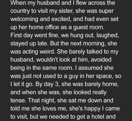 When my husband and I went to stay with my sister, everything felt perfect — laughter, late-night talks, and the comfort of home.
