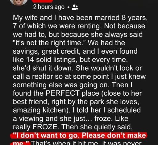 We had savings, great credit, and every reason to do it — but every time I mentioned it, she’d quietly say, “It’s not the right time.”