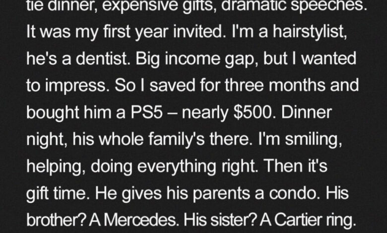 He gave his parents his “old” condo as a city place. His brother got the keys to Brandon’s customized AMG. His sister opened a Cartier ring that sprayed prisms across the china. The room hummed with appreciation and money. In my lap, the PS5 felt suddenly quaint and wildly earnest—and still, I was proud. Thoughtful beats price tags, I told myself. Love is personal. Love is… enough.