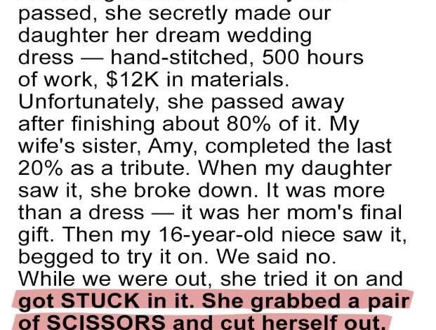 My Niece Destroyed the Wedding Dress My Late Wife Made for Our Daughter – She Was Quickly Brought Back Down to Earth