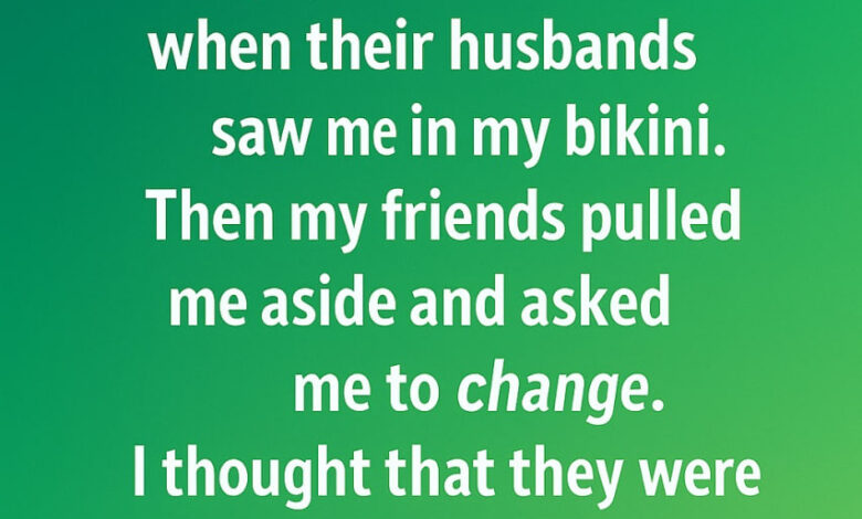 As the day went on, I noticed my friends exchanging glances, almost like they were whispering about something. A little later, one of them gently pulled me aside and asked if I could change into something a bit more modest. At first, I thought it was a joke — after all, we were at the beach, and everyone was wearing swimsuits!Curious and slightly puzzled, I agreed to change into a cover-up. As I walked past one of their husbands on my way to the restroom,