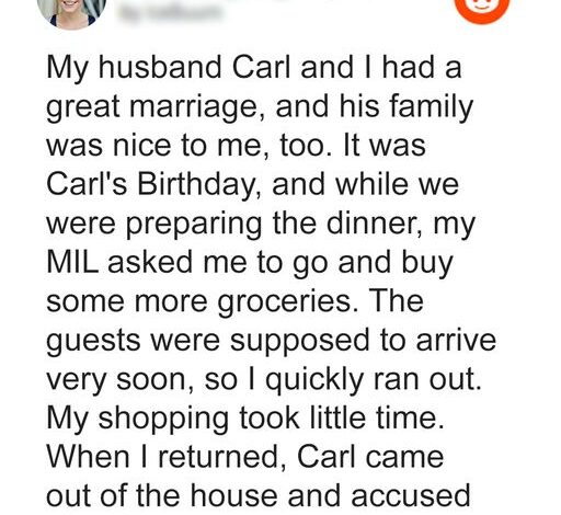 My husband Carl and I had a great marriage, and his family was nice to me, too. It was Carl’s birthday, and while we were preparing dinner, my MIL asked me to go and buy some more groceries. The guests were supposed to arrive very soon, so I quickly ran out. My shopping took little time. When I returned, Carl came out of the house and accused me of ruining his birthday. It turned out that his mom…