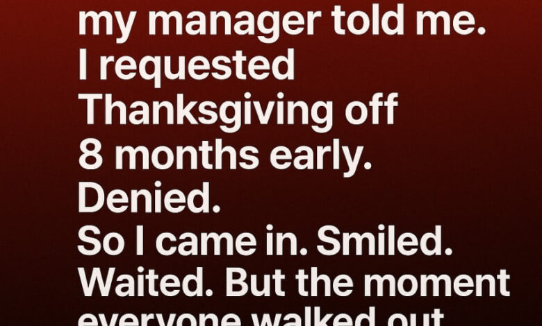 I was the only one working holidays for 4 years. “No kids means no holidays,” my manager told me. I requested Thanksgiving off 8 months early. Denied. So I came in. Smiled. Waited. But the moment everyone walked out that door, I immediatel …sent in my resignation email—with a two-sentence note: