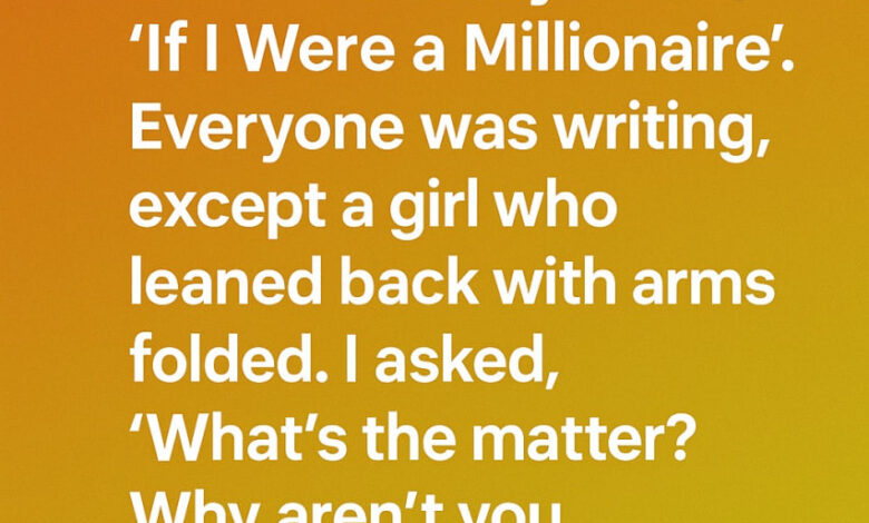 She looked at me with quiet confidence and said, “I’m just thinking… because I already feel rich, and I want to explain it the right way.” Curious, I encouraged her to continue. When I read her essay later, the opening line stopped me in my tracks: “I wouldn’t change much if I were a millionaire, because I already have everything that makes my heart full.”