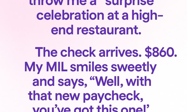 I just landed a major promotion at work, and my in-laws decided to throw me a “surprise” celebration at a high-end restaurant. It felt thoughtful at first, and I appreciated the gesture—until the check arrived. The total was $860. My mother-in-law smiled and said, “Well, with that new paycheck, you’ve got this one!” The table chuckled lightly, but I felt uneasy. I had never agreed to host the event; I had simply been invited to it.