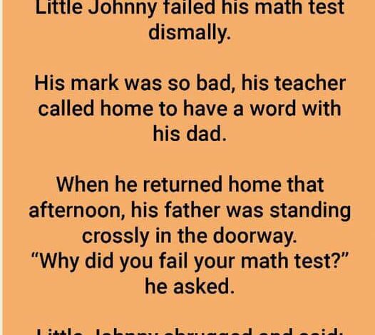His mark was so low that his teacher felt concerned and called home to speak with his father. When Johnny returned that afternoon, he found his dad waiting at the doorway with a serious expression. “Why did you fail your math test?” his father asked. Johnny hesitated, looked down, and quietly replied, “I tried… but the numbers just didn’t make sense.”