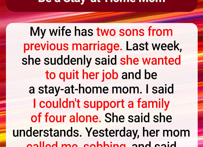 Then, one evening, she sat me down and said she wanted to quit her job and become a stay-at-home mom.