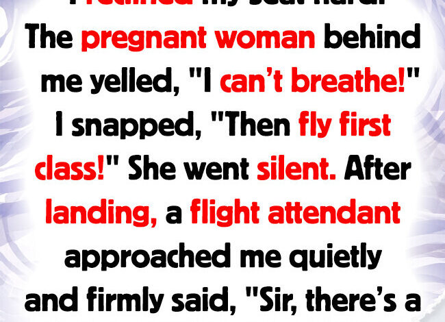 After landing, a flight attendant approached me quietly and firmly said, “Sir, there’s something you might want to check.” She handed me a note. It was from the woman behind me explaining that she was 8 months pregnant and had been experiencing discomfort throughout the flight. The sudden recline had pressed against her stomach, causing her distress. She wrote that she couldn’t afford first class as she was traveling to see her sick mother one last time before giving birth.