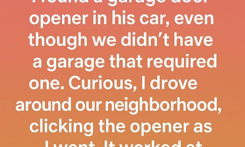 After my husband passed away, I was left to sort through his things. I found a garage door opener in his car, even though we didn’t have a garage that required one. Curious, I drove around our neighborhood, clicking the opener as I went. It worked at a garage on the corner of the street. My heart raced as the door slowly lifted and I saw what was inside.