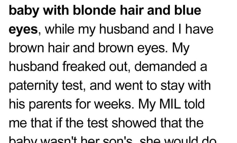 I gave birth five weeks ago to a baby with blonde hair and blue eyes, while my husband and I have brown hair and brown eyes. My husband freaked out, demanded a paternity test, and went to stay with his parents for weeks. My MIL told me that if the test showed that the baby wasn’t her son’s, she would do anything so that I was “taken to the cleaners” during the divorce. Yesterday, we received the results. My husband, wide-eyed and shocked, stared at them as his hands began to tremble slightly. I felt a mix of fear, exhaustion, and hope swirling inside me as I waited for him to speak.