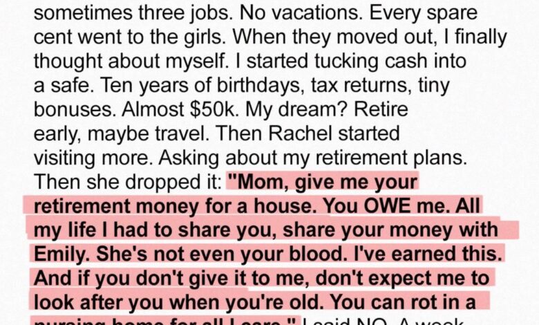 Julie had spent her entire life giving—working two jobs, skipping her own needs, and sacrificing every dream so her daughters could have the best future possible. After decades of selflessness, she quietly saved enough money to finally breathe, envisioning a peaceful retirement surrounded by love. To her, that small nest egg wasn’t just money—it was freedom and security after a lifetime of struggle.