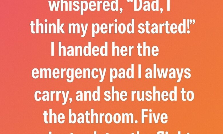 We were on the plane, halfway through our journey, when my daughter leaned close to me and whispered, her voice barely audible over the hum of the engines,“Dad, I think my period started.”For a second, her words hung in the air. I saw her eyes wide with panic and embarrassment, and my heart immediately ached for her. She was still so young, and I knew this was one of those moments that would stay with her forever. Without hesitation, I reached into my bag and handed her the emergency pad I always carry, just in case.