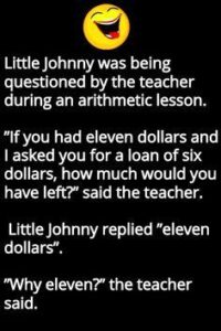 During a math lesson, Johnny was asked: “If you have $11 and lend $6, how much do you have left?” He answered confidently, “Eleven dollars.”