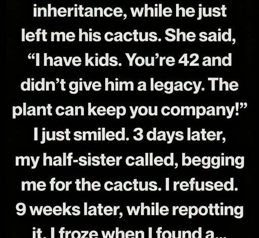 The same cactus that had sat by his living room window for decades—awkwardly shaped, duller than any plant you’d choose on purpose. My half-sister laughed. Not cruelly, just dismissively. She said she had children to think about. Real responsibilities. Real needs. At forty-two, she added, I was surely fine with something small.