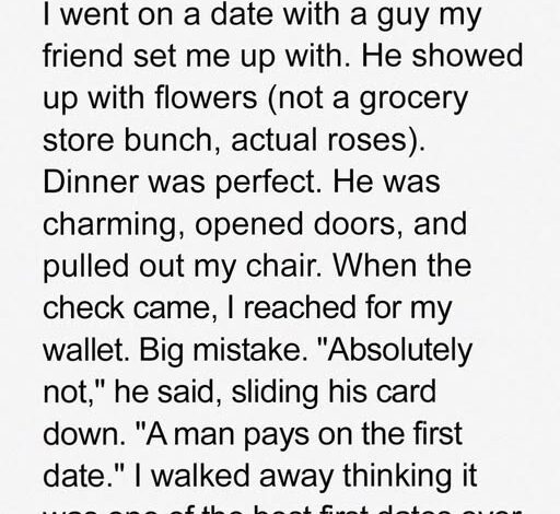 When my best friend Mia set me up with Eric, she promised he was a “total gentleman.” And at first, he seemed to be just that—roses, a personalized keychain with my initial, and effortless charm over dinner. He insisted on paying the bill, saying with a confident smile, “A man pays on the first date.” I left the restaurant floating, convinced I’d just had the best first date of my life.