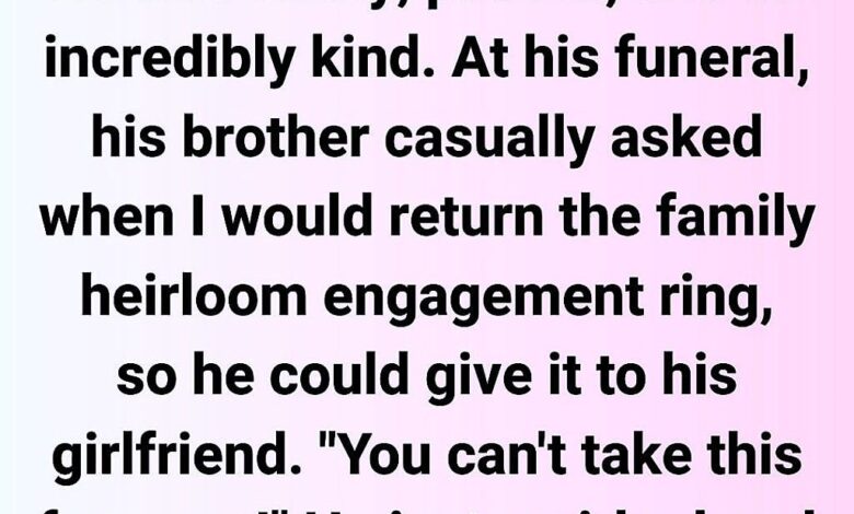 Since that day, I’ve been getting texts and emails from his mom, his sister, even his aunt. All polite on the surface—“we understand you’re grieving, but the ring belongs to the family”—but underneath it all, they’re just trying to take it from me.