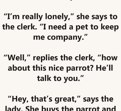She returned, frustrated, only to find the parrot had died. Its final words? “Doesn’t that store carry any food?”