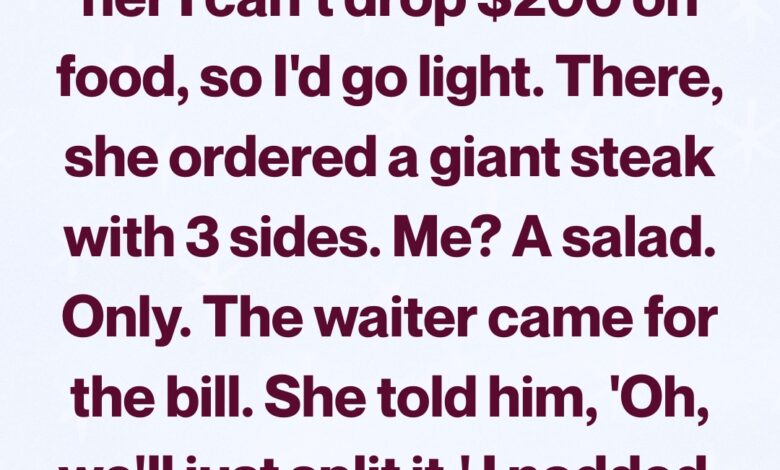 I kept it modest. A small steak salad. No drink, no sides, no dessert. But the tension between us was palpable. I’ve known her long enough to recognize that familiar pattern: living large, letting someone else absorb the consequences.