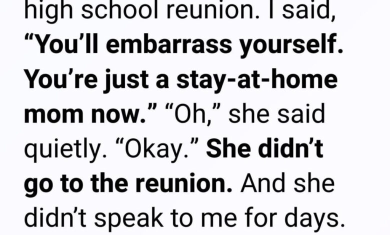 I mocked my wife, Anna, for being “just a stay-at-home mom” when she mentioned her high school reunion. She didn’t argue—she just went quiet, and the warmth disappeared from our home.