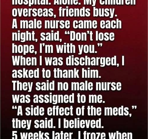During a two-week hospital stay, I felt invisible—my children were busy elsewhere, and visitors were rare. But each night, a calm nurse checked on me, offering quiet encouragement that made the lonely nights bearable.