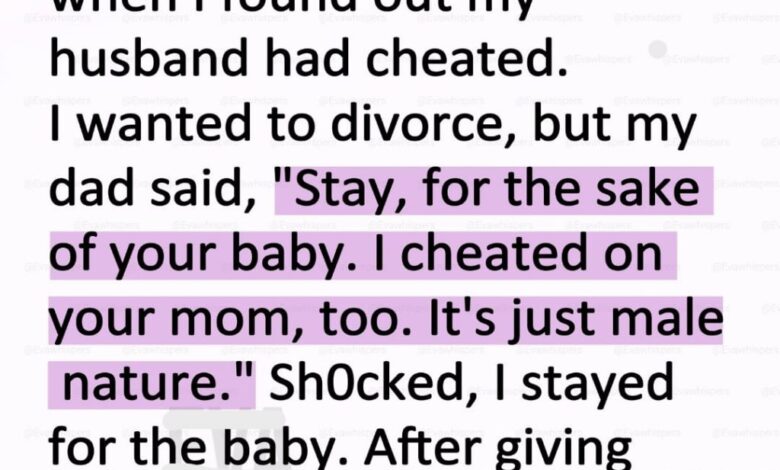 She went home to her parents crying, unsure what to do next. Her father sat with her and, seeing how fragile she was, told her to stay with her husband for the baby’s sake. When she asked why, he confessed he himself had been unfaithful to her mother in the past — a shocking revelation that shifted her perspective in the moment and made her pause, even though it hurt.