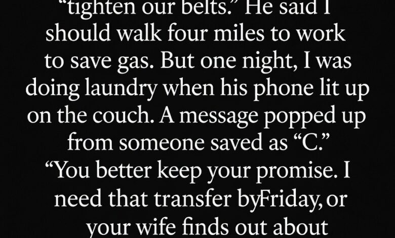 His phone started lighting up with messages from someone called “C.” One of them stopped me cold: “Send the transfer by Friday, or your wife finds out everything.”