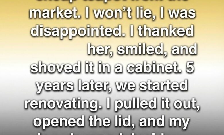 It didn’t match my kitchen, and it wasn’t the kind of milestone gift I had imagined. Still, I appreciated the gesture, placed it in a cabinet, and let it fade into the background of everyday life. Five years later, during a full kitchen renovation, I emptied cabinets and rediscovered forgotten items.