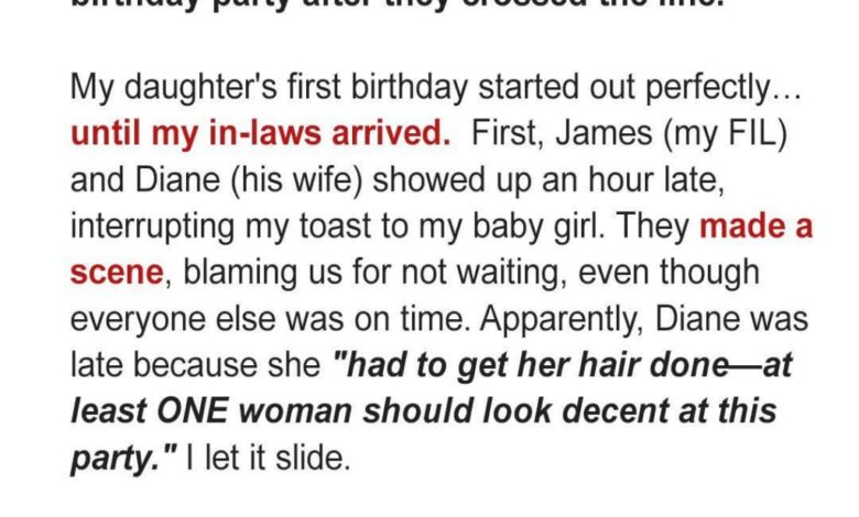 But when his parents arrived late, their critical comments and disregard for our simple house rules quickly turned the day into a test of patience. At first, I tried to keep smiling. They had always been difficult to please, but I believed that family could set differences aside for something as precious as their granddaughter’s special day.