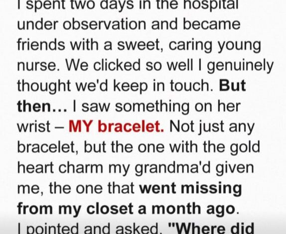 When I broke my leg, I noticed my nurse Stephanie wearing a bracelet — my grandmother’s gift that I’d lost weeks earlier. She said her boyfriend had given it to her. My heart sank.