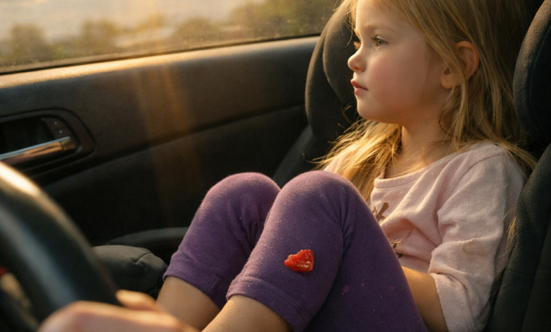 We were driving home from preschool. Tess had kicked off her shoes, a half-eaten fruit snack stuck to her leggings, staring out the window like she was reading secrets in the clouds. Sunlight poured in through the glass in soft golden streaks.
