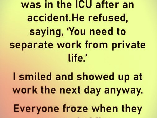 I had done it all from the hospital, between updates from nurses, while staying by my son’s side. Then I calmly said, “You asked me to separate work and personal life, so I did. My son needed me there. The work still got done.”