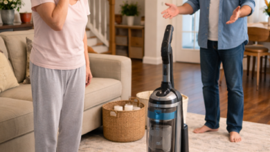 The tea wasn’t even that hot. It left a faint amber stain across my husband’s designer jeans and a darker…